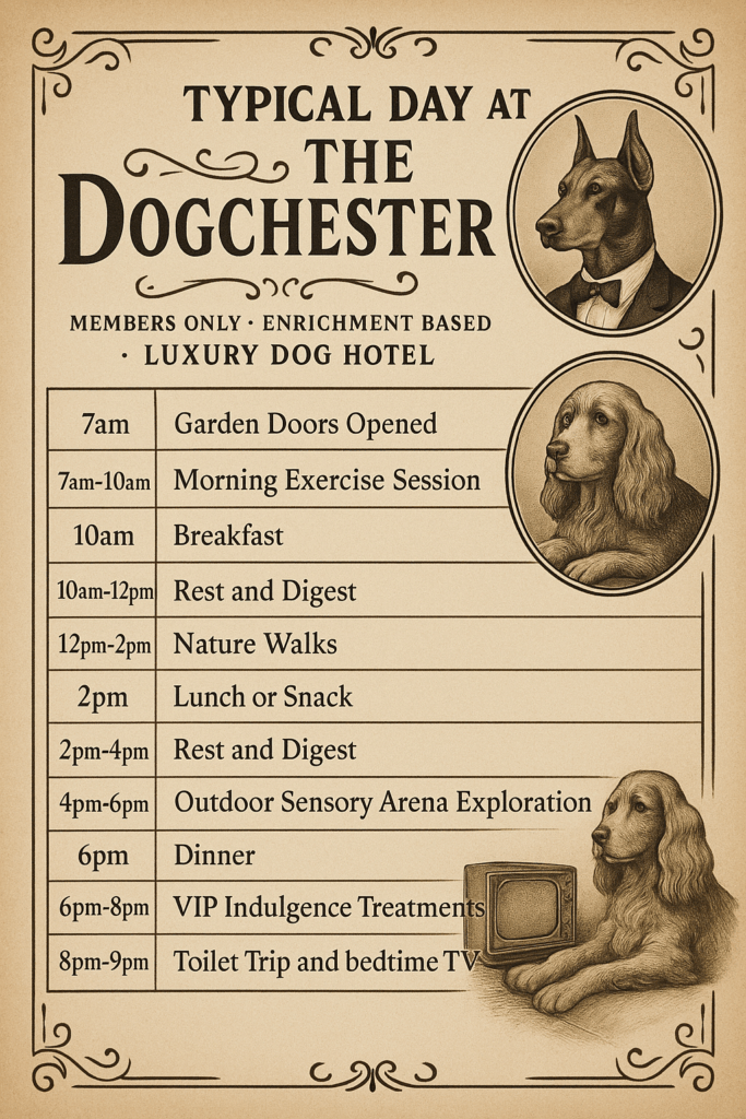 See how your dog can thrive with our expertly designed daily schedule at The Dogchester.